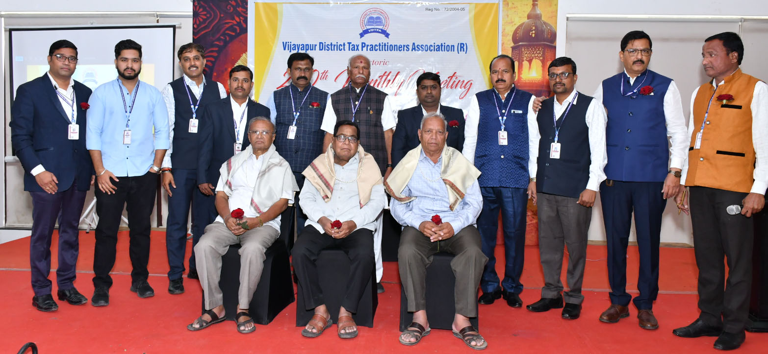 Welcome to the Vijayapur District Tax Practitioner Association (VDTPA), your premier destination for tax professionals in the Vijayapur District. We are a dedicated association committed to serving the needs of tax practitioners and advancing the excellence of the tax profession in our district. A professional organization dedicated to advancing the field of taxation and supporting tax professionals in their careers. We were founded in 1968 with the goal of bringing together tax practitioners, educators, and policymakers to share knowledge, exchange ideas, and promote best practices in taxation. Association is presently having about 127 members consisting of Tax Consultants, Advocates, Chartered Accountants &Cost Accountants who are practicing in taxation laws. All these are collectively known as "TAX PRACTITIONERS". The association is meant to discuss common problems of tax professionals & find the solution for the problems faced by them by way of representing legal, procedural and administrative issues to the Commissioner of SGST, CGST and Finance Minister of Maharashtra as well as Central government. The business community many times enjoy the fruits of this representation.
